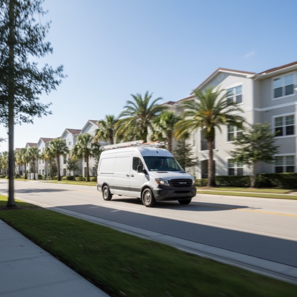 Apartment complexes may require gate codes. Commercial properties need loading zone access coordination. Universal theme park events and conventions increase traffic on Universal Boulevard and I-4 exits.